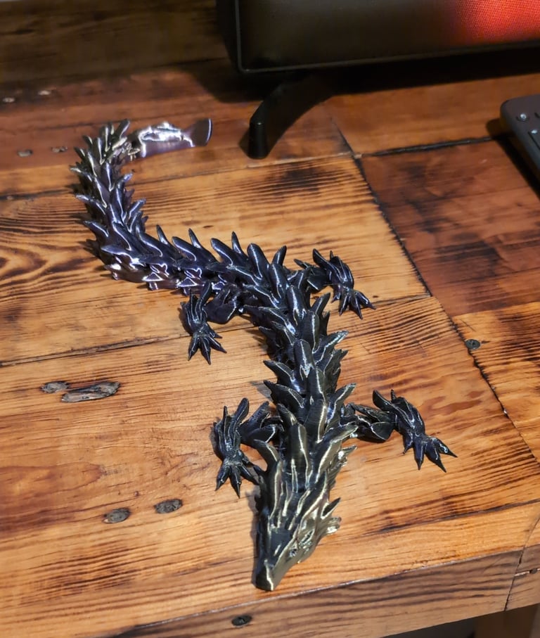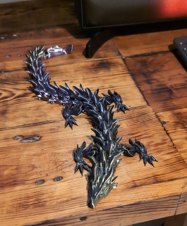 Dragón negro-dorado-morado